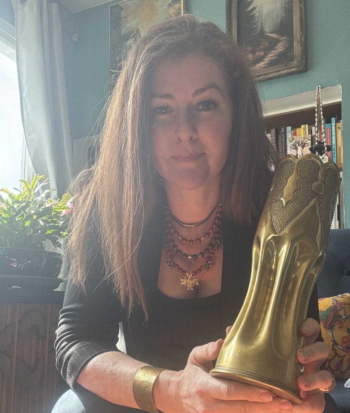 This handsome brass vase is stationed on a table in my office, filled with dried and naturally dyed corn husk flowers.  A seemingly subtle artifact at first glance but grows with meaning and depth as its true symbolism emerges in conversations regarding fortitude, creativity as therapeutic approach, and focused purpose as a mindful means of coping with pain.